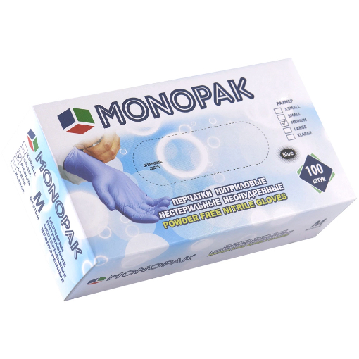 Перчатки нитриловые смотровые неопудренные ТМ Монопак ( голубые) S (100шт) (20уп/кор) МЕД